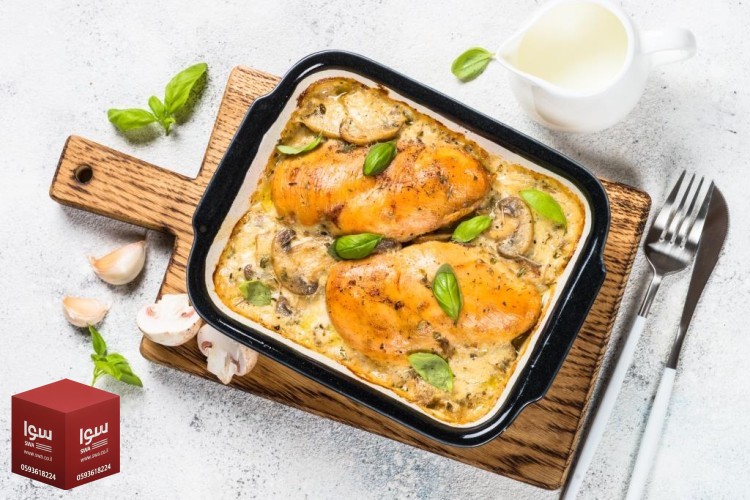 دجاج بالكريمة والفطر بطريقة المطاعم